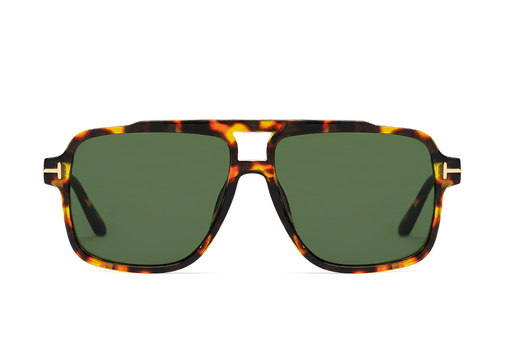 Okulary pilotki w kolorze brąz panterka z zieloną soczewką.Element dekoracyjny na zauszniku.