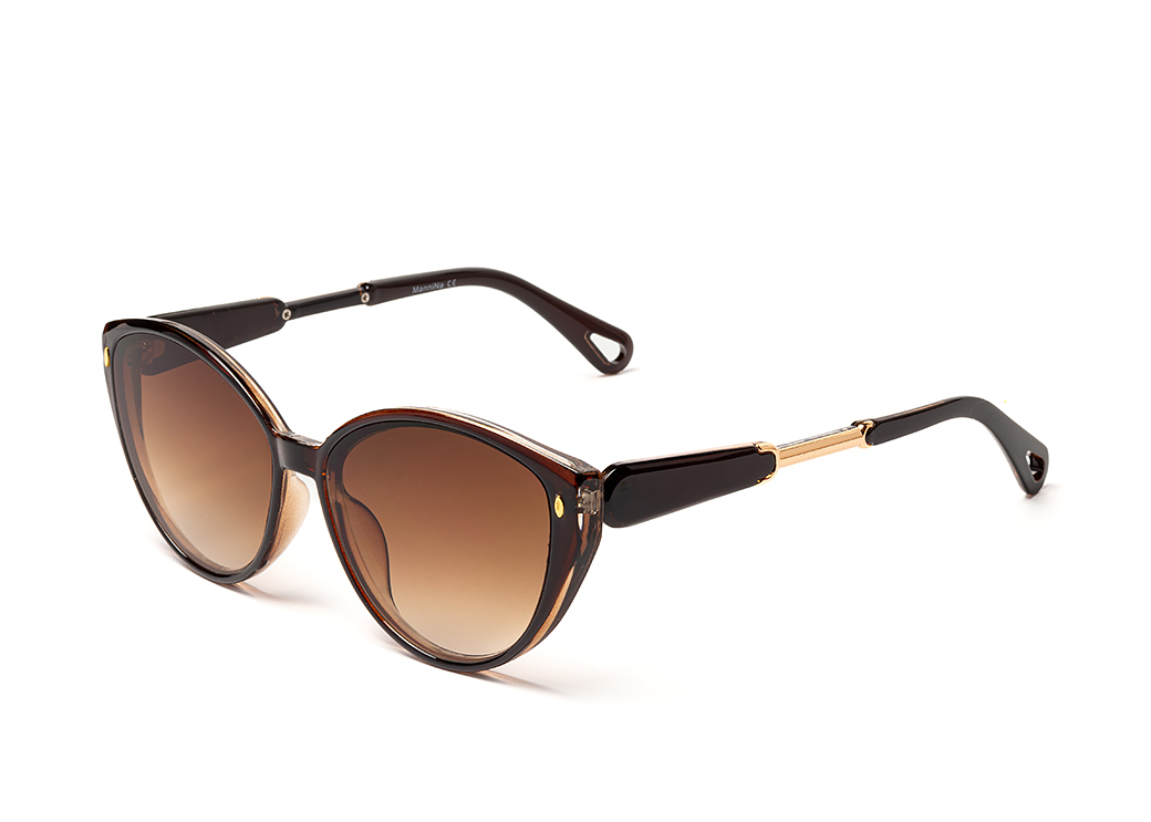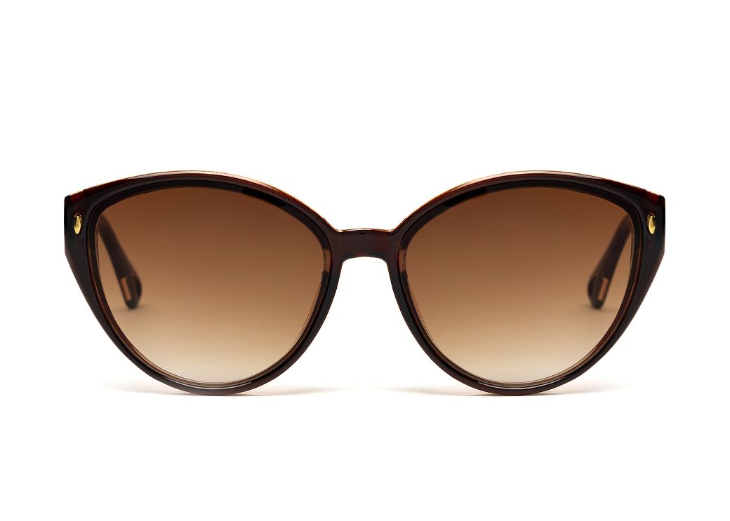 Okulary przeciwsłoneczne o owalnym kształcie w kolorze brązowym.