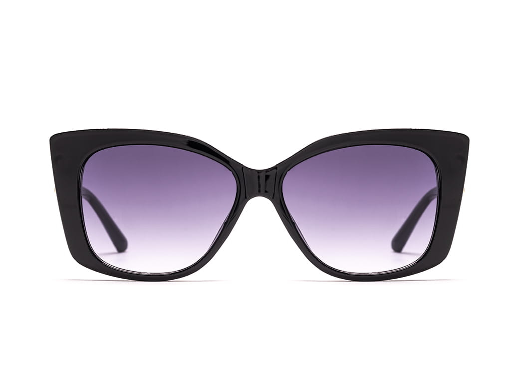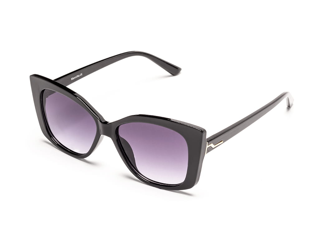Okulary przeciwsłoneczne w kolorze czarnym o kształcie "kocie oko" z delikatnym zdobieniem na zauszniku.
