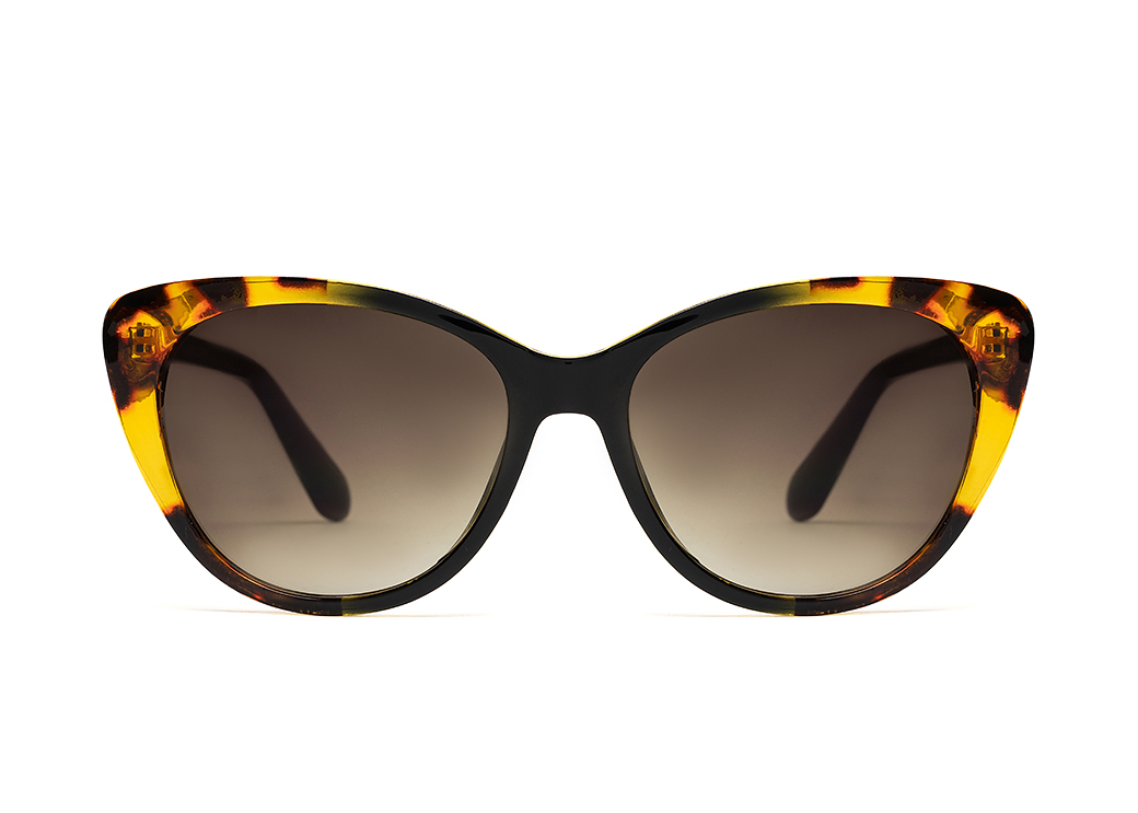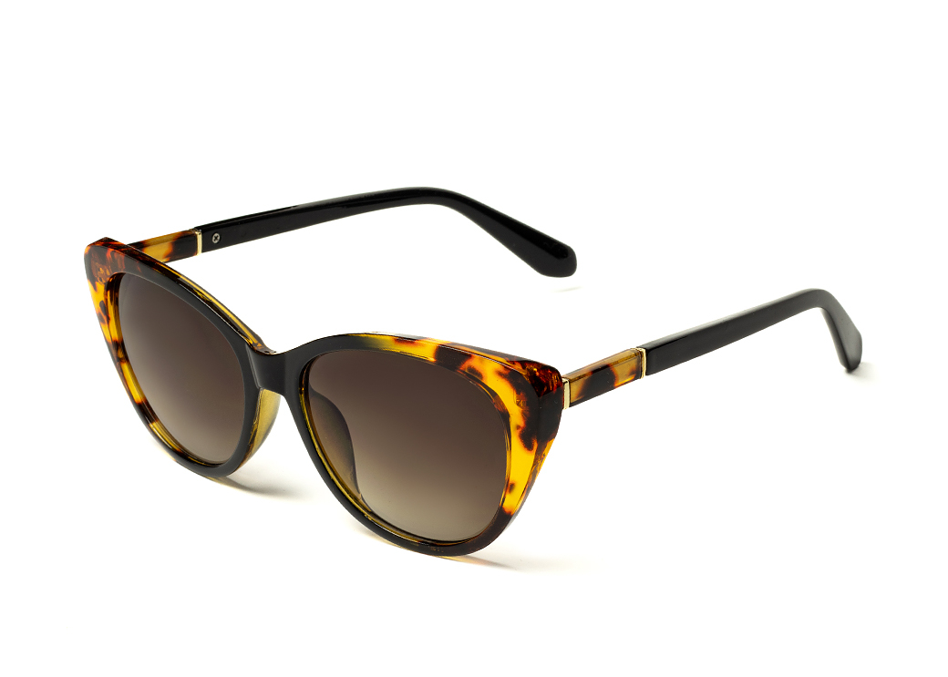Okulary przeciwsłoneczne o kształcie "kocie oko" w kolorze brąz panterka.Element dekoracyjny na zauszniku.