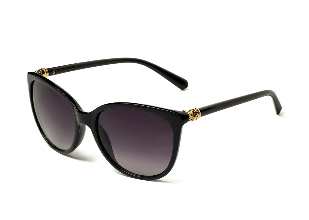 Okulary przeciwsłoneczne o kształcie "kocie oko" w kolorze czarnym.Mały element dekoracyjny na zauszniku.