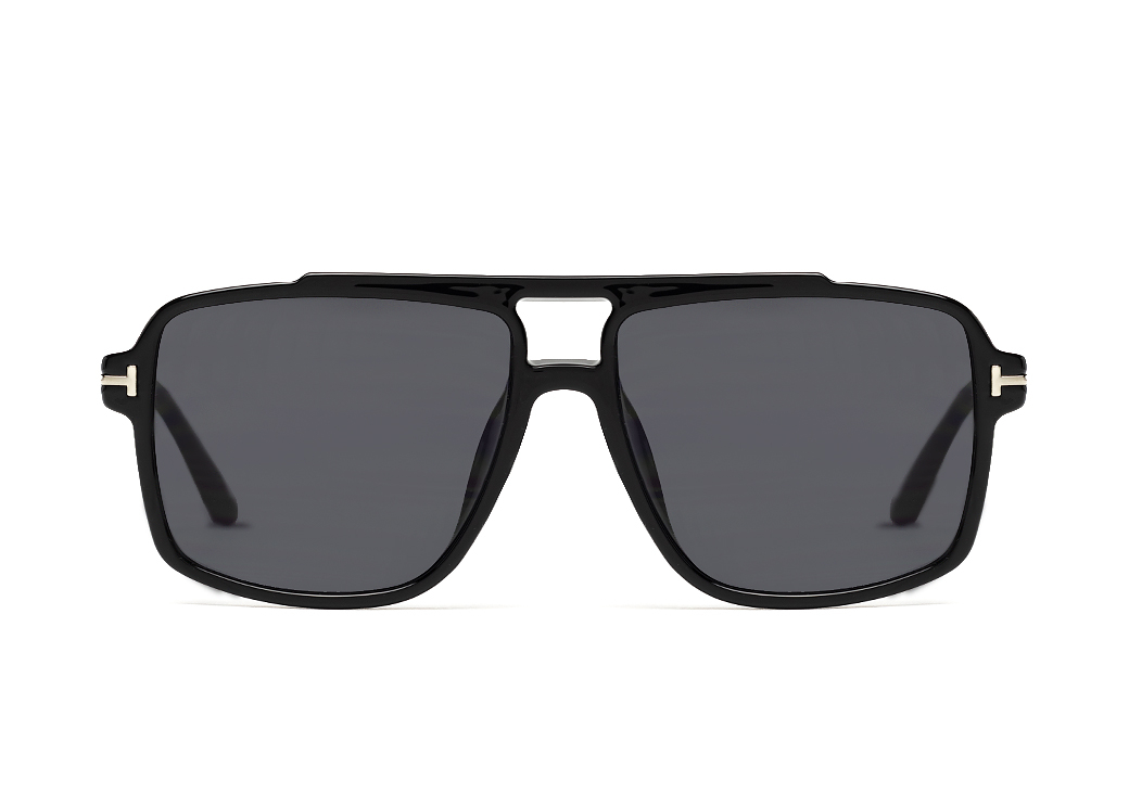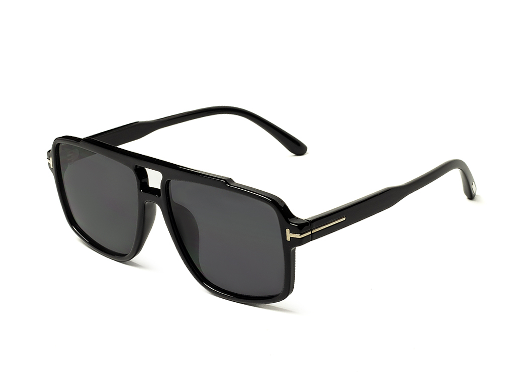 Okulary przeciwsłoneczne typu "aviator" w kolorze czarnym z ciemnoszarą soczewką.Delikatny element dekoracyjny na zauszniku.