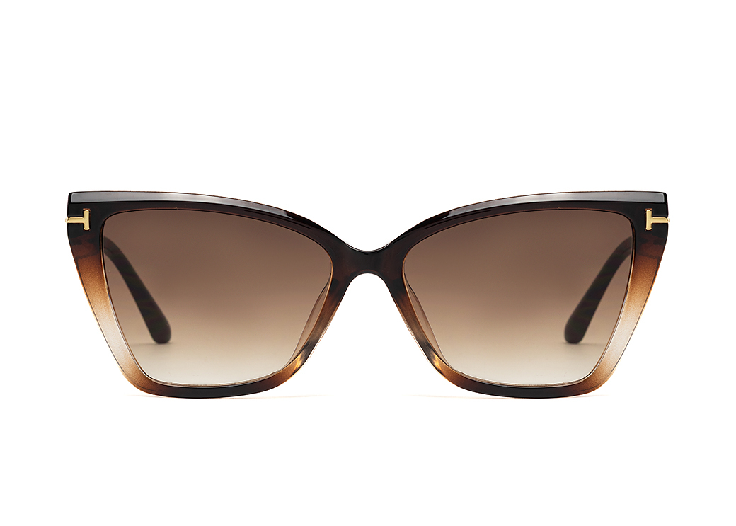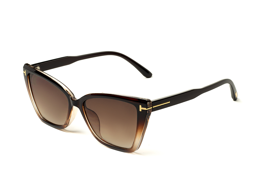 Okulary przeciwsłoneczne o kształcie "kocie oko" w kolorze brązowym.Delikatne zdobienie na zauszniku.
