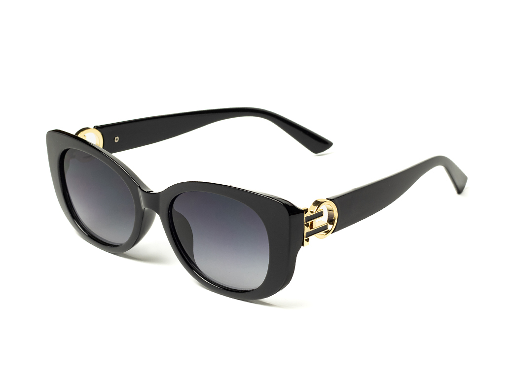Okulary przeciwsłoneczne o kształcie "kocie oko" w kolorze czarnym.Eleganckie zdobienie na zauszniku.