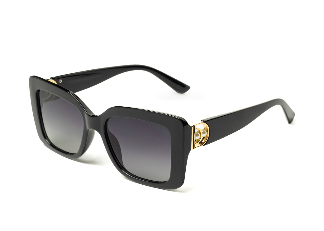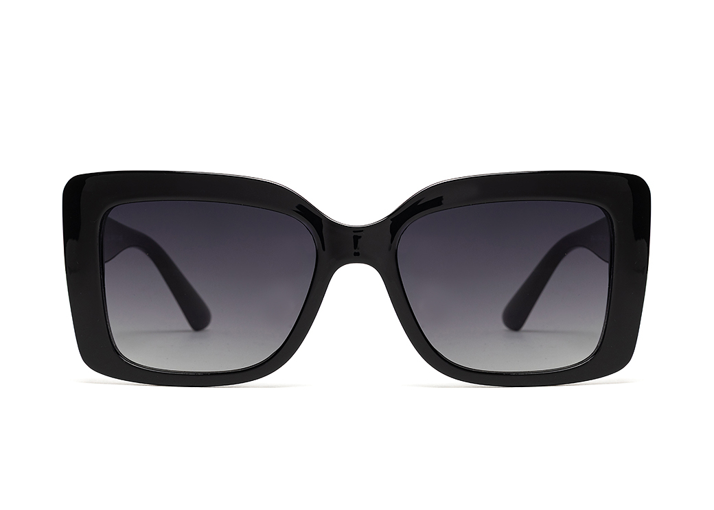 Klasyczne okulary przeciwsłoneczne w kolorze czarnym.Gustowne zdobienie zausznika.