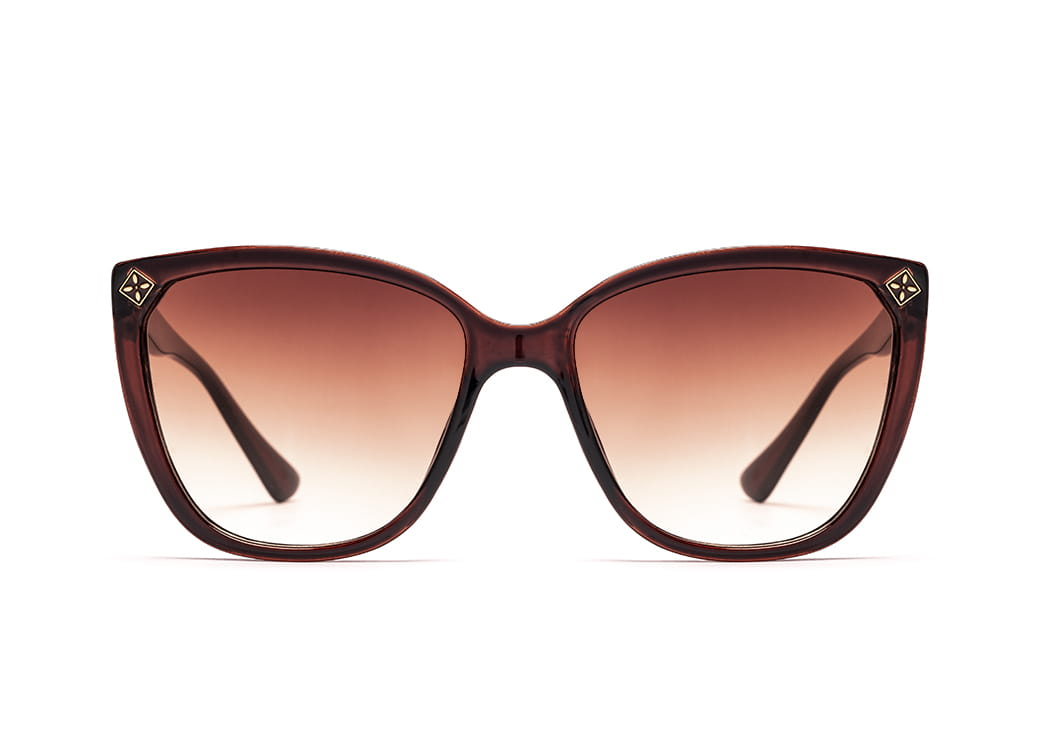 Klasyczne okulary przeciwsłoneczne z polaryzacją w kolorze brązowym.Lekkie zdobienie w narożniku oprawki.