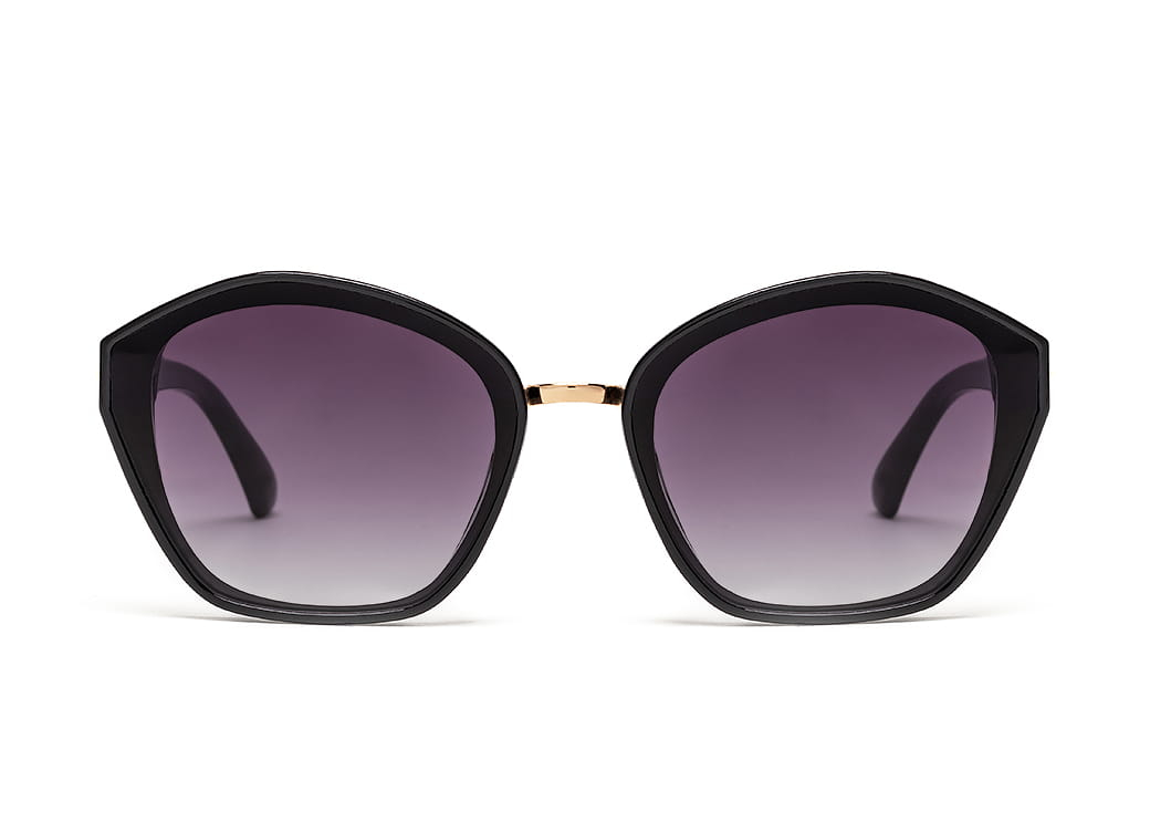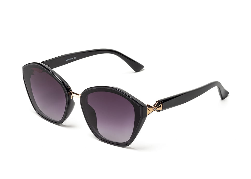 Okulary przeciwsłoneczne z polaryzacją o lekko geometrycznym kształcie w kolorze czarnym.Niewielki element dekoracyjny na zauszniku.