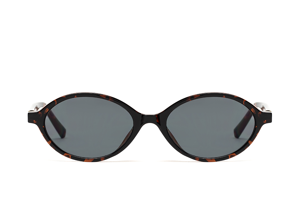 Małe okulary przeciwsłoneczne o modnym kształcie "jajeczko" w kolorze brąz panterka, soczewka ciemnoszara.Wykonane z lekkiego i elastycznego materiału TR90.