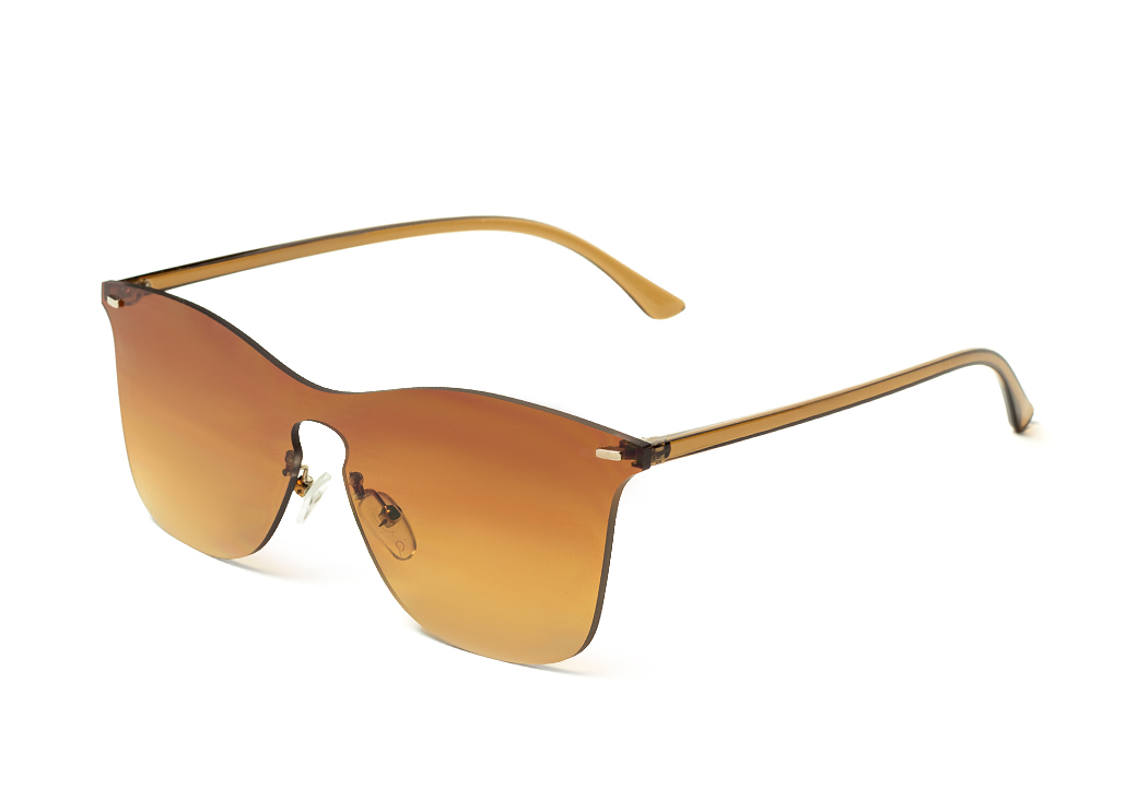 Okulary przeciwsłoneczne typu maska w kolorze brązowym.