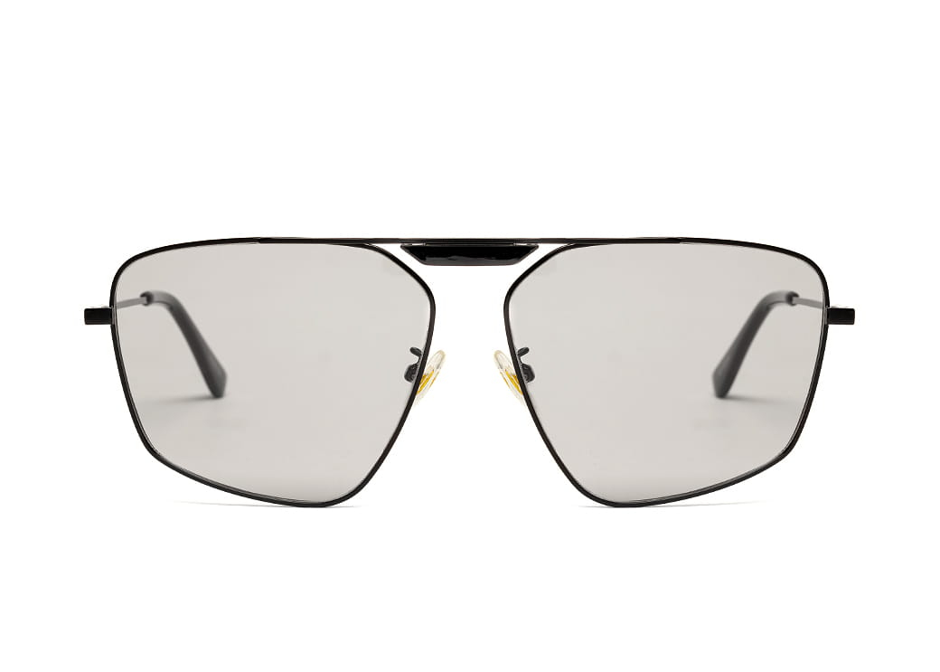 Delikatne metalowe okulary przeciwsłoneczne o kształcie aviator,soczewka w kolorze jasnoszarym.