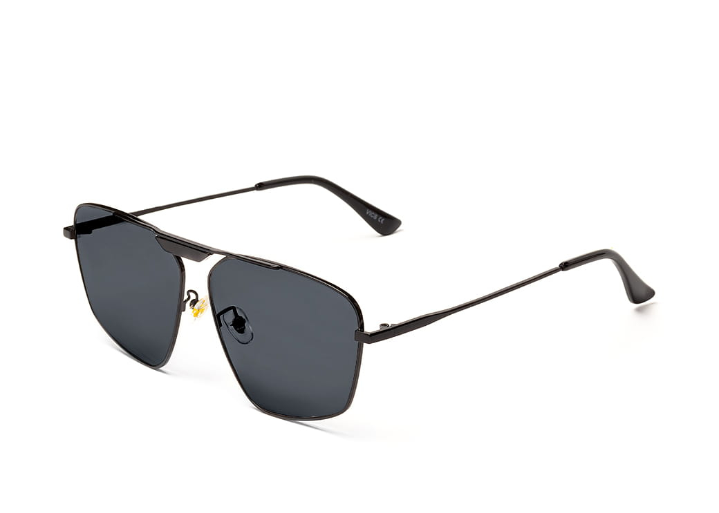 Delikatne metalowe okulary przeciwsłoneczne o kształcie aviator,soczewka w kolorze czarnym.