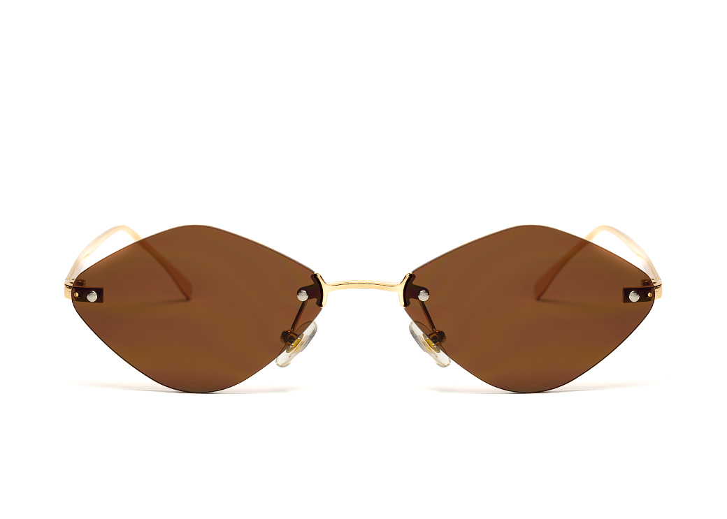 Lekkie okulary przeciwsłoneczne o geometrycznym kształcie z brązową soczewką i metalowymi zausznikami.