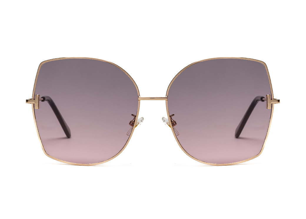 Delikatne,metalowe okulary przeciwsłoneczne, soczewka amarantowa.