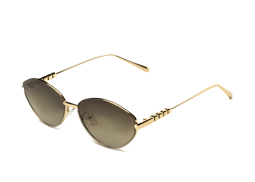 Okulary przeciwsłoneczne o owalnym kształcie, brązowa soczewka soczewka, oryginalne metalowe zauszniki.
