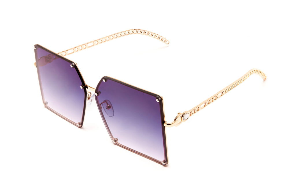 Duże,kwadratowe okulary przeciwsłoneczne, soczewka ciemnoszara.Elegancki,metalowy zausznik.