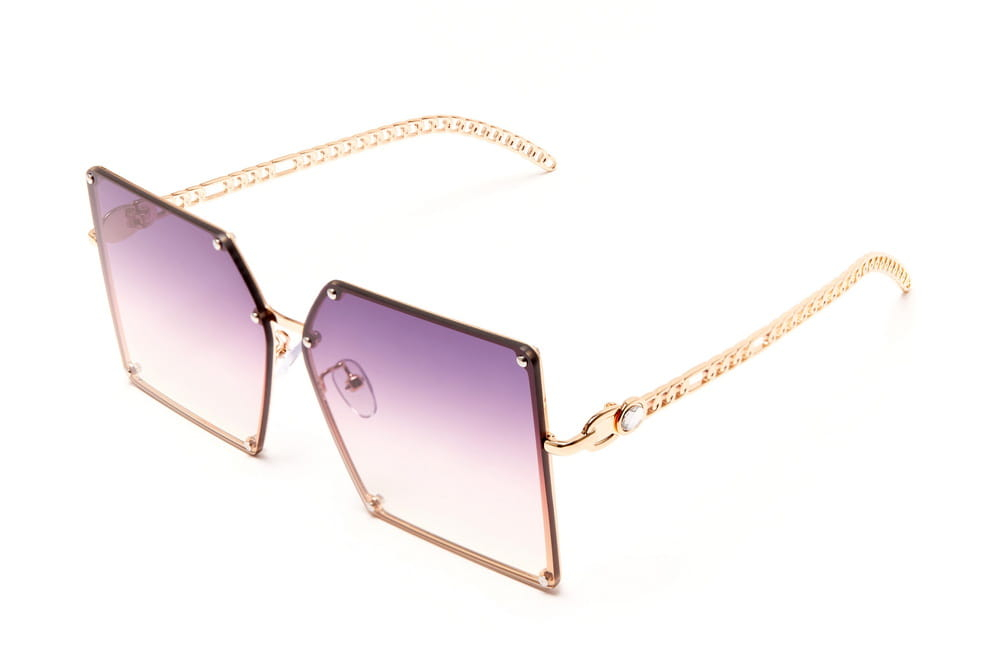 Duże,kwadratowe okulary przeciwsłoneczne, soczewka amarantowa.Elegancki,metalowy zausznik.