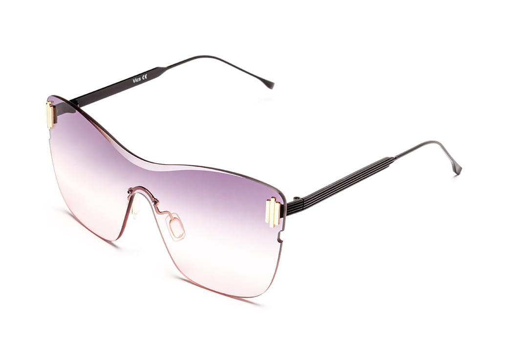 Oryginalne,bezramkowe okulary przeciwsłoneczne o kształcie "maska",soczewka amarantowa.