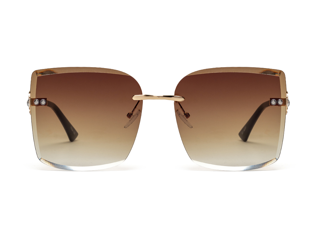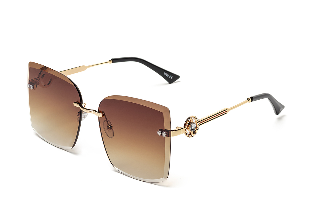 Metalowe okulary przeciwsłoneczne z eleganckim, zdobionym zausznikiem.Soczewka brązowa.