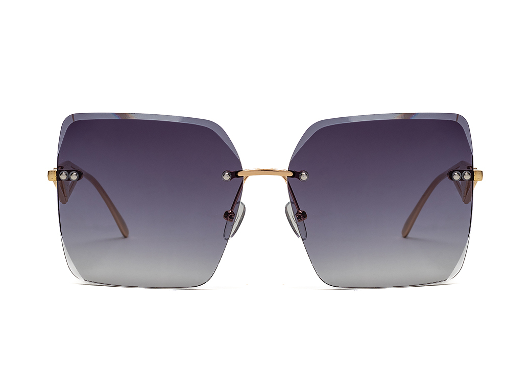 Okulary przeciwsłoneczne z soczewką w kolorze ciemnoszarym i eleganckim metalowym zausznikiem.