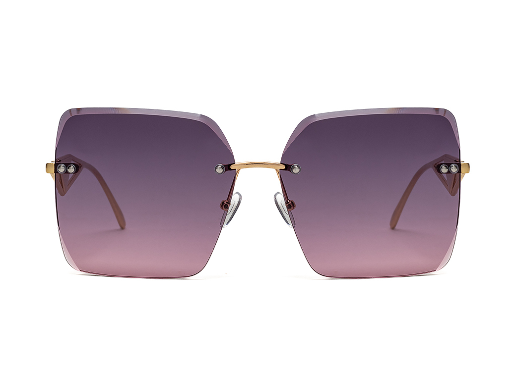 Okulary przeciwsłoneczne z soczewką w kolorze amarantowym i eleganckim metalowym zausznikiem.
