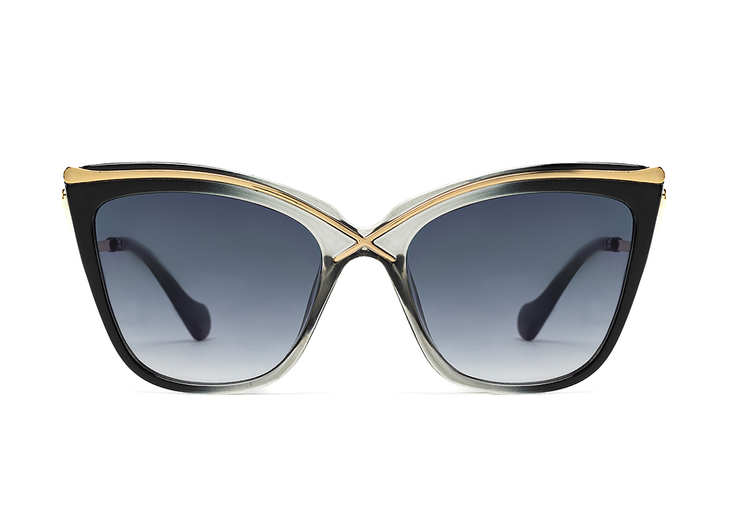 Okulary przeciwsłoneczne o kszałcie "kocie oko" w kolorze czarnym.Metalowe zdobienie na froncie oprawki.