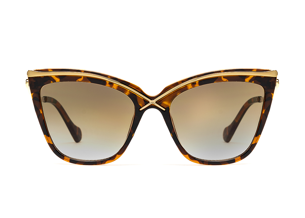 Okulary przeciwsłoneczne o kszałcie "kocie oko" w kolorze brąz panterka.Metalowe zdobienie na froncie oprawki.