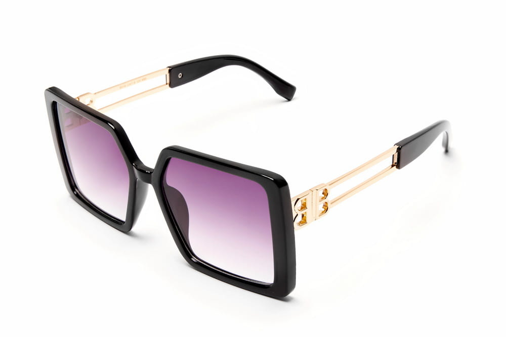 Duże,kwadratowe okulary przeciwsłoneczne w kolorze czarnym.Elegancki metalowy zausznik.