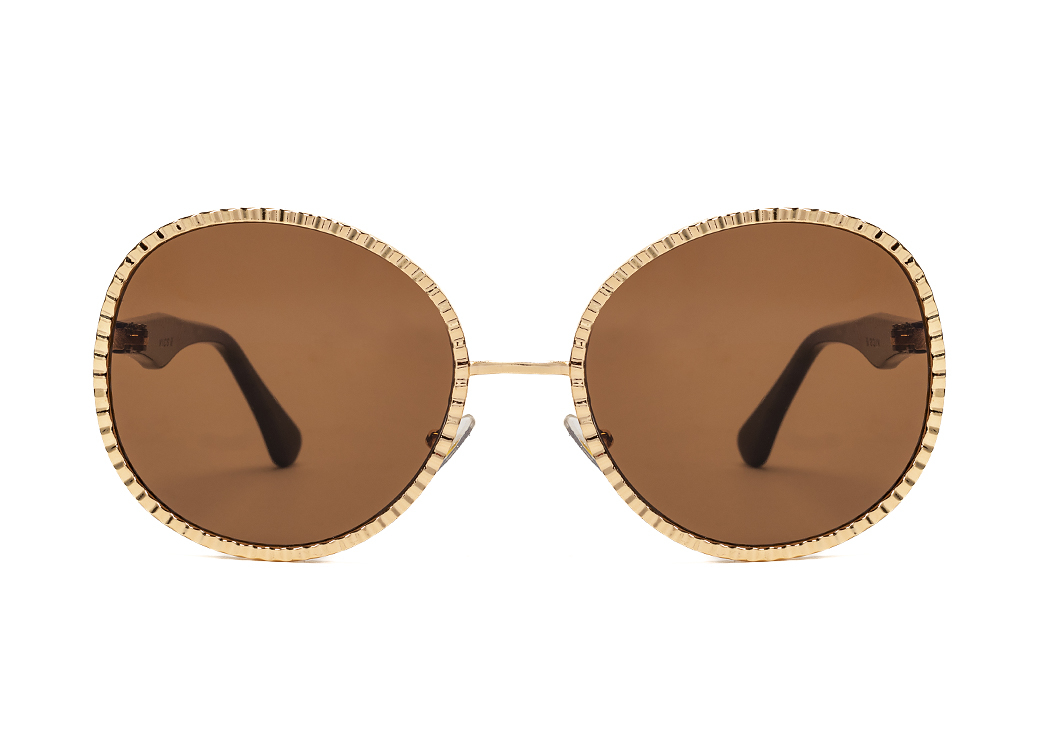 Eleganckie owalne metalowe okulary przeciwsłoneczne z soczewką brązową.