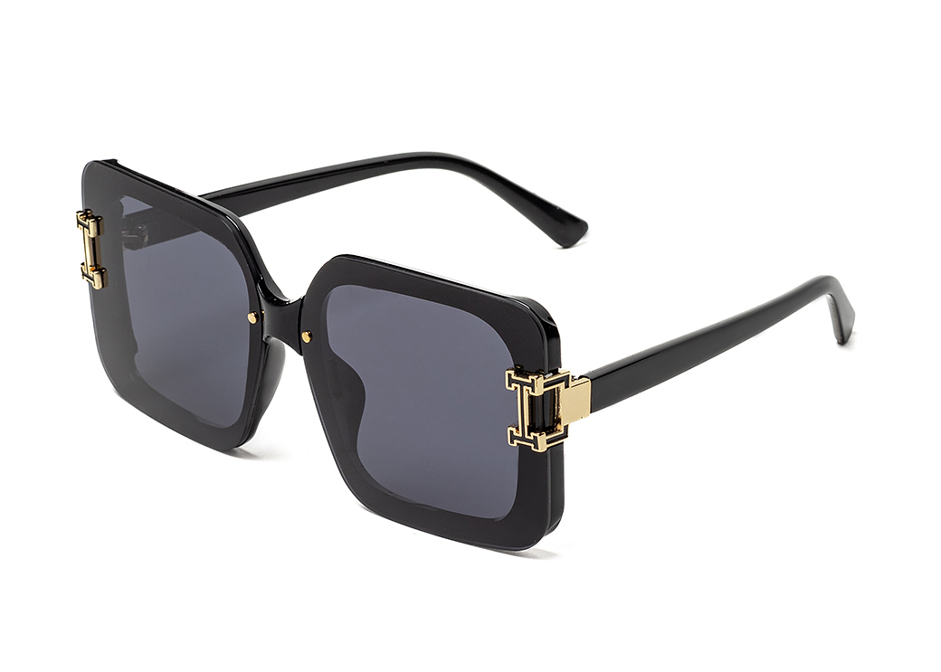 Duże okulary przeciwsłoneczne w kolorze czarnym.Eleganckie zdobienie na froncie oprawki.