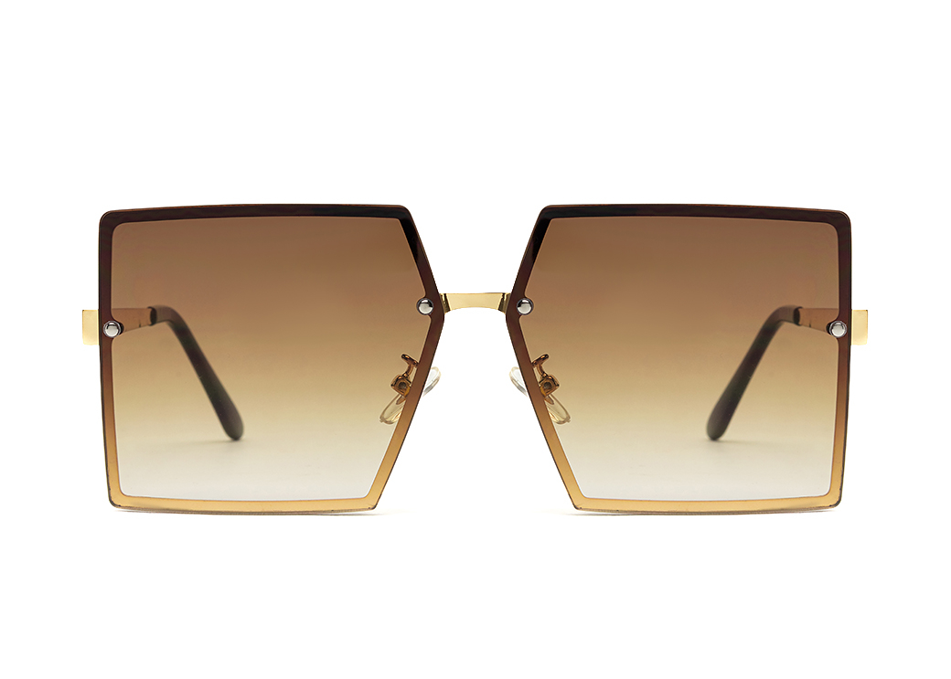Duże okulary przeciwsłoneczne o geometrycznym kształcie w kolorze brązowym.Elegancki metalowy zausznik.