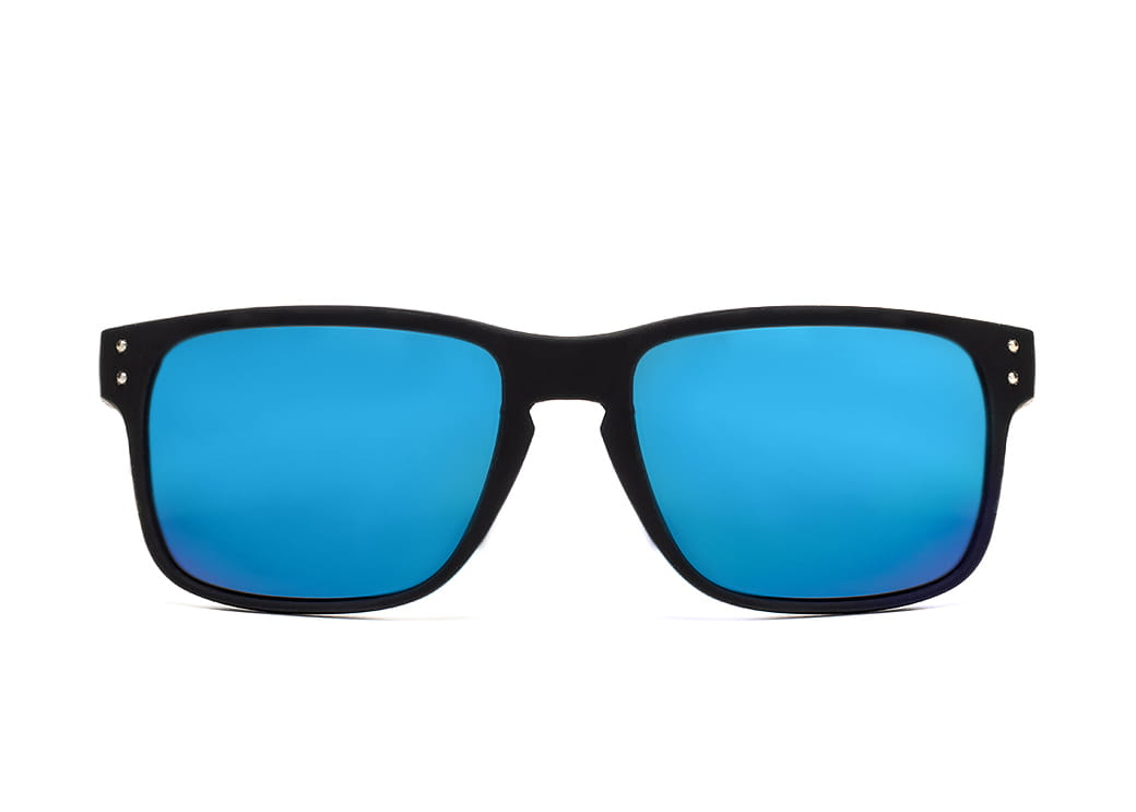 Okulary przeciwsłoneczne męskie z polaryzacją, soczewka w kolorze niebieskim.Wykonane z wysokiej jakości matowego plastiku.